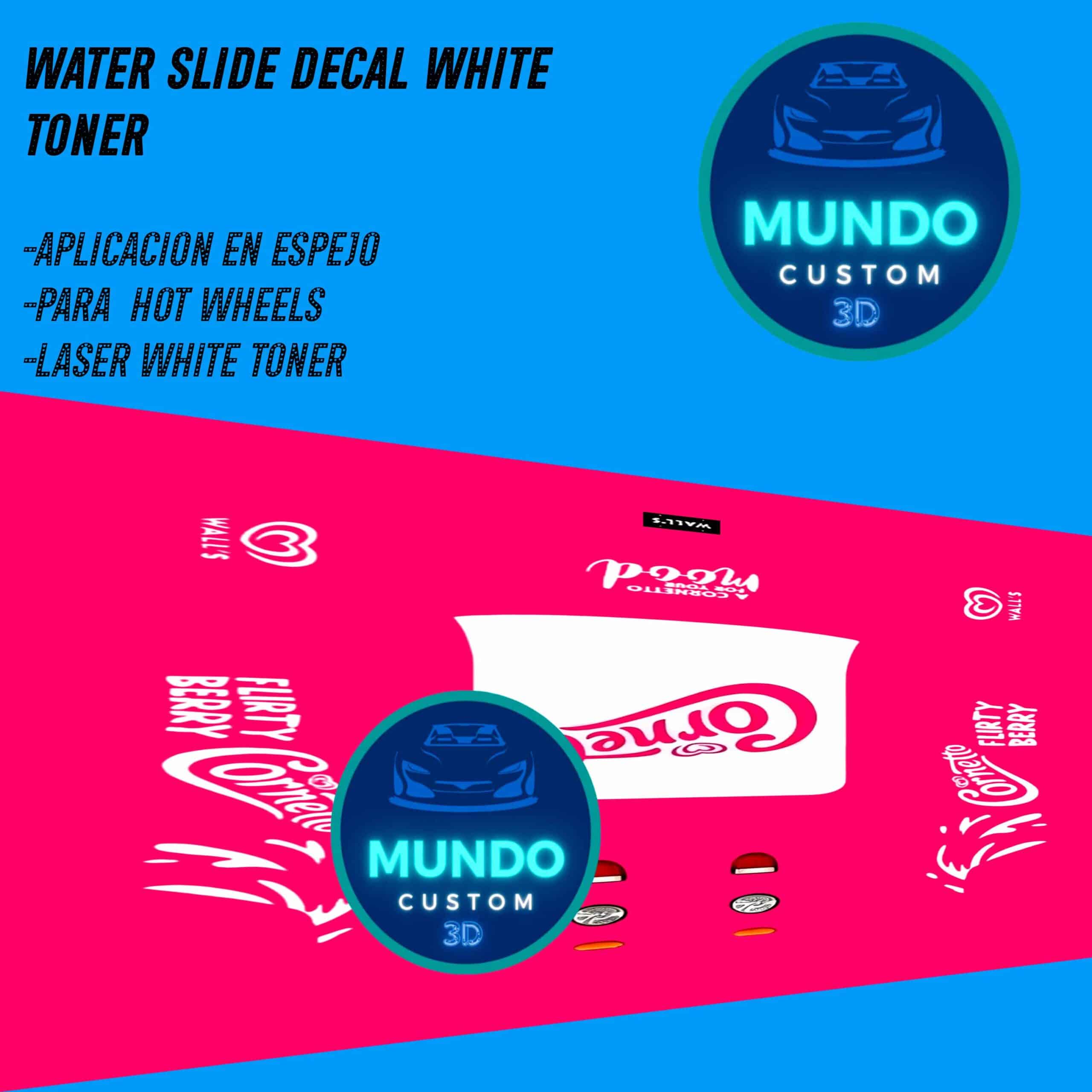 La característica que nos distingue es nuestra tinta blanca de alta densidad y opacidad. A diferencia de otras decals que se pierden o desaparecen sobre fondos oscuros, nuestras decals de Hot Wheels con fondo blanco garantizan que tus diseños, logotipos y detalles personalizados se vean nítidos, vibrantes y completamente visibles, sin importar el color de la pintura de tu Hot Wheels. ¿Quieres un diseño blanco sobre un coche negro mate? ¡Absolutamente posible! ¿Un detalle en blanco sobre un azul intenso? ¡Se verá espectacular!