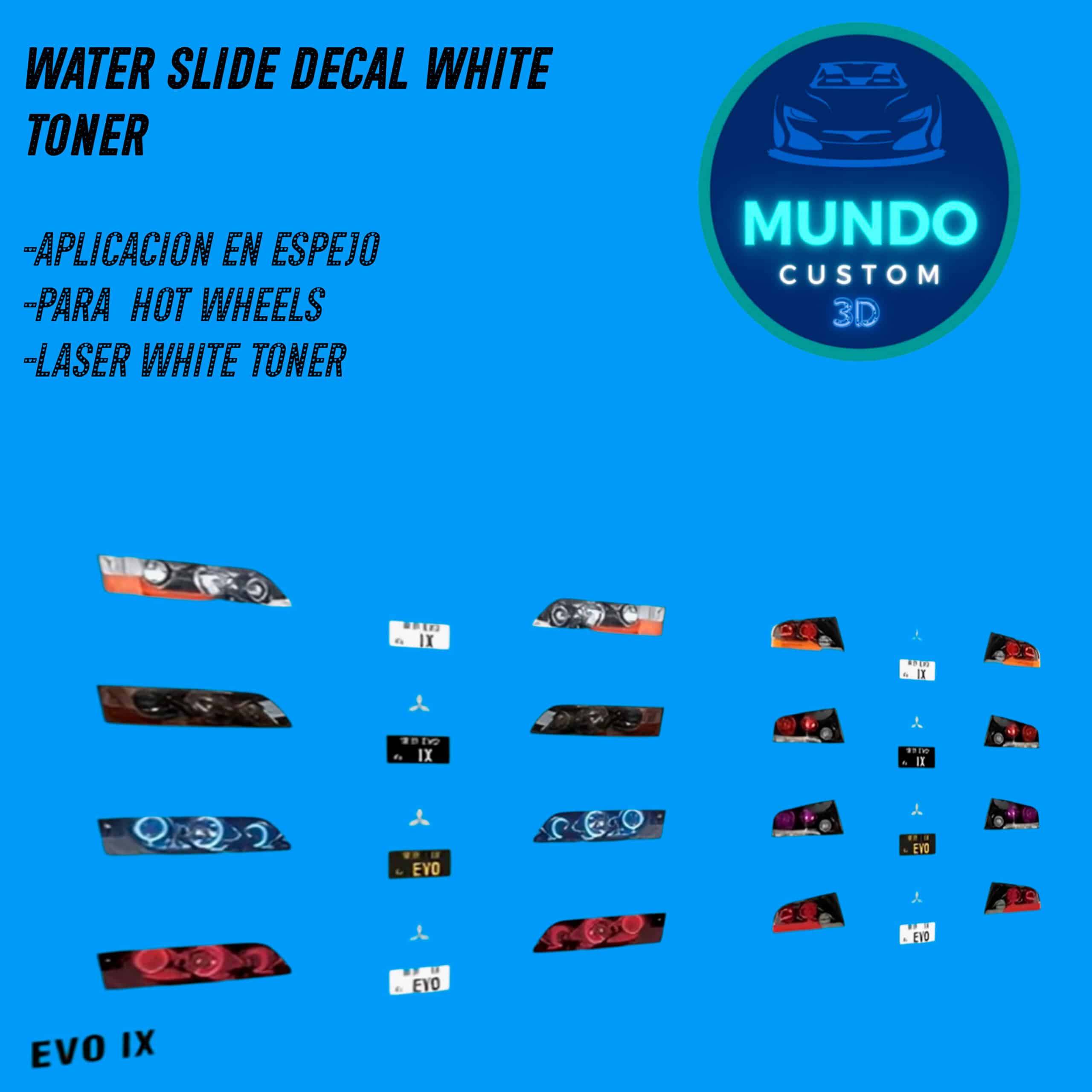 ¿Quieres que tu Mitsubishi Lancer Evolution 9 de Hot Wheels cobre vida? El mayor problema de los castings básicos es la falta de detalle en las ópticas, dejando el coche con un aspecto incompleto. Transforma tu miniatura y dale una mirada agresiva con nuestras Decals de Faros Premium con Tinta Blanca, diseñadas para ofrecer un realismo increíble que las calcas comunes no pueden alcanzar.