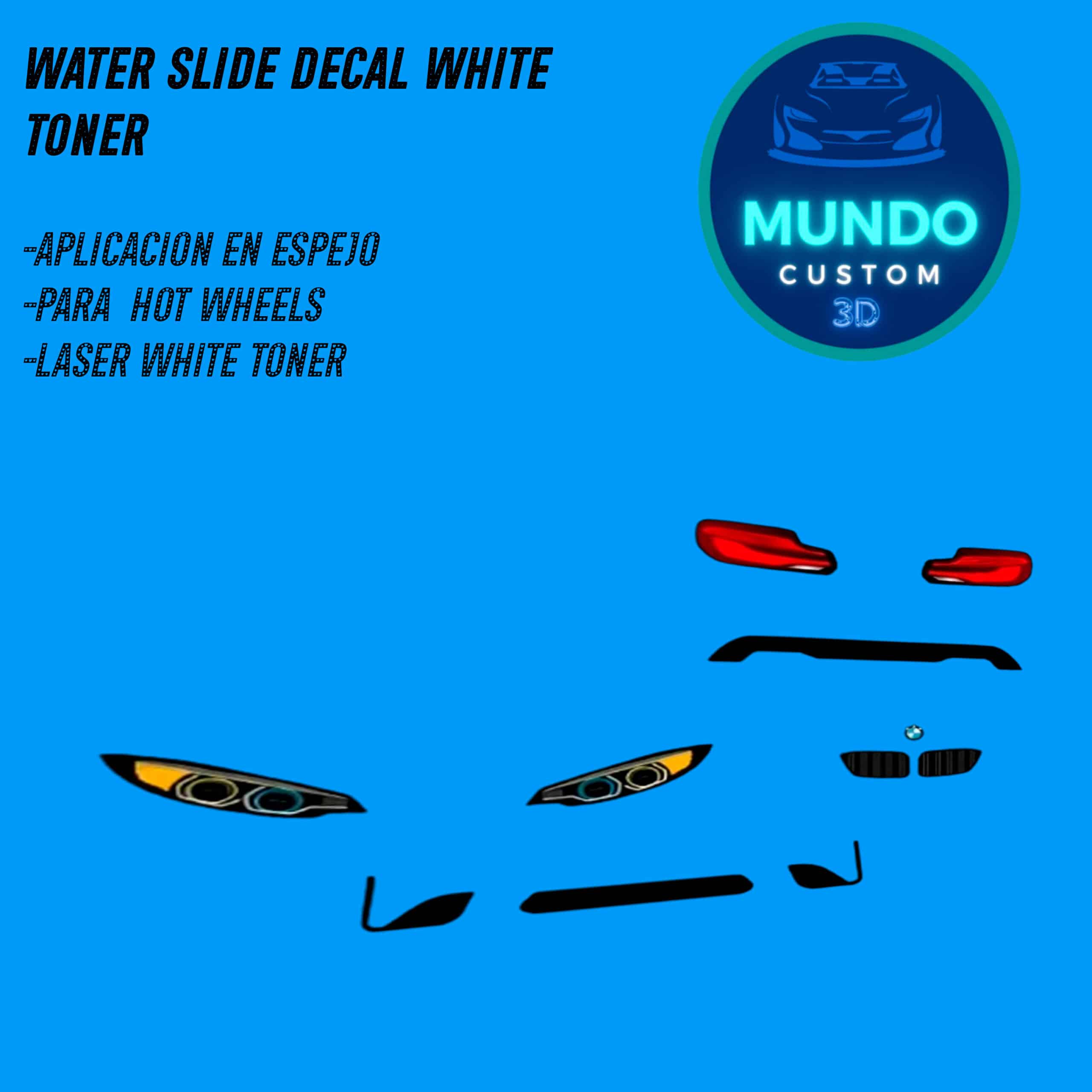 La característica que nos distingue es nuestra tinta blanca de alta densidad y opacidad. A diferencia de otras decals que se pierden o desaparecen sobre fondos oscuros, nuestras decals de Hot Wheels con fondo blanco garantizan que tus diseños, logotipos y detalles personalizados se vean nítidos, vibrantes y completamente visibles, sin importar el color de la pintura de tu Hot Wheels. ¿Quieres un diseño blanco sobre un coche negro mate? ¡Absolutamente posible! ¿Un detalle en blanco sobre un azul intenso? ¡Se verá espectacular!
