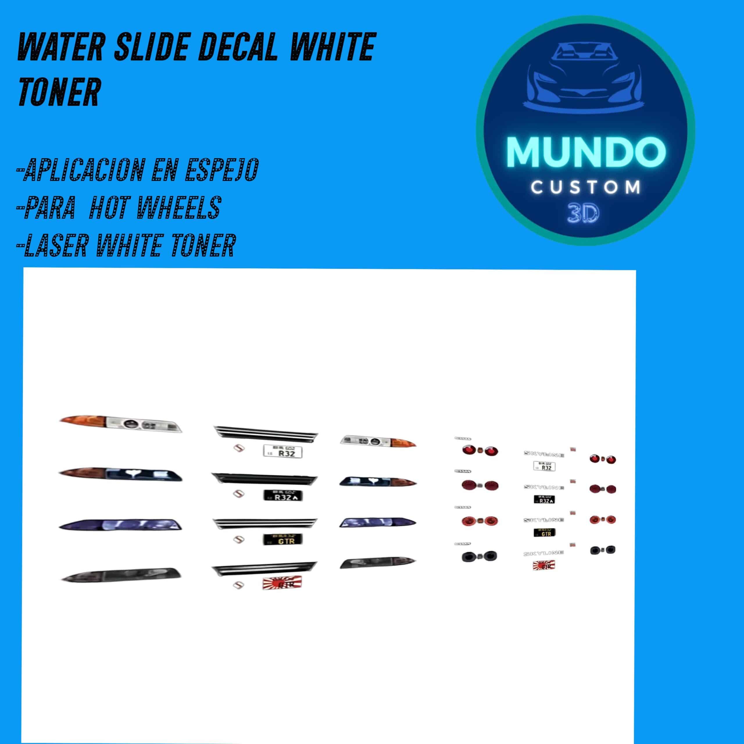 La característica que nos distingue es nuestra tinta blanca de alta densidad y opacidad. A diferencia de otras decals que se pierden o desaparecen sobre fondos oscuros, nuestras decals de Hot Wheels con fondo blanco garantizan que tus diseños, logotipos y detalles personalizados se vean nítidos, vibrantes y completamente visibles, sin importar el color de la pintura de tu Hot Wheels. ¿Quieres un diseño blanco sobre un coche negro mate? ¡Absolutamente posible! ¿Un detalle en blanco sobre un azul intenso? ¡Se verá espectacular!